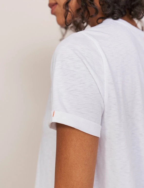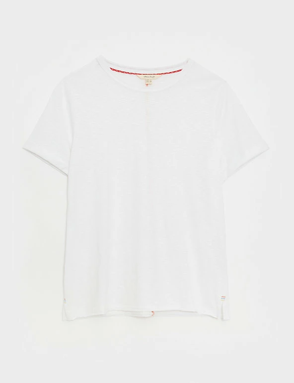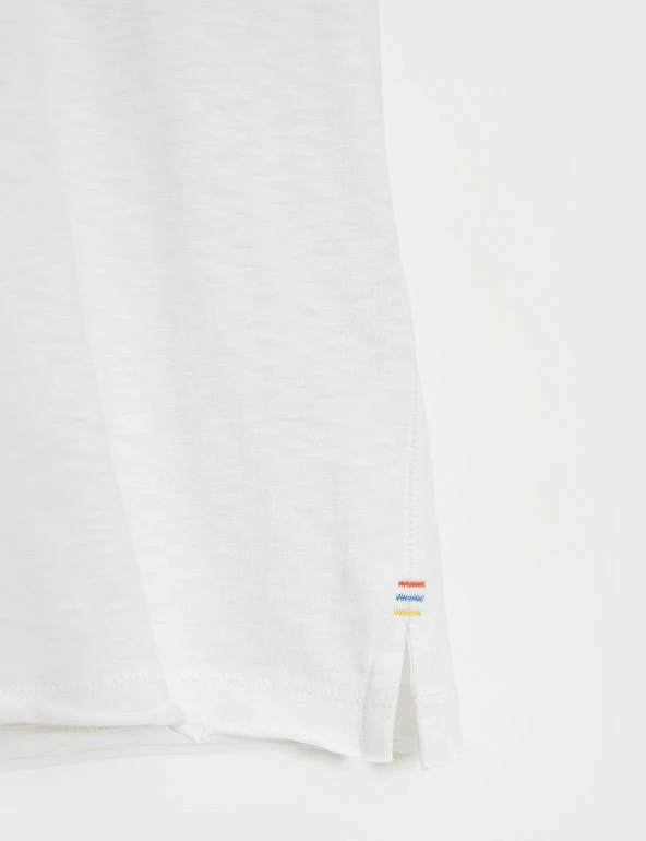 This pure cotton t-shirt from White Stuff has a subtle hint of colour. Designed in a regular fit, this soft jersey piece is as comfortable as it is versatile. It has short turn-up sleeves and a classic round neck, plus slits at the hem for easy wear. Contrast stitching down the back, and at the cuffs and sides, adds a unique finish to this wardrobe essential.