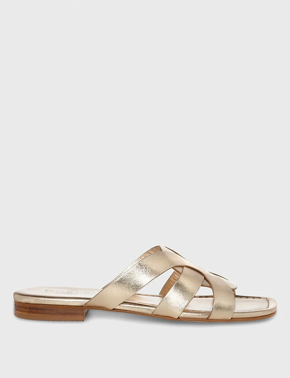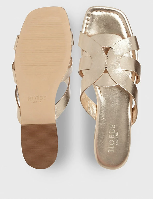 Slip into effortless summer style with these metallic leather sandals from Hobbs. They have a ’70s-inspired interlocking strap design for a chic look.
