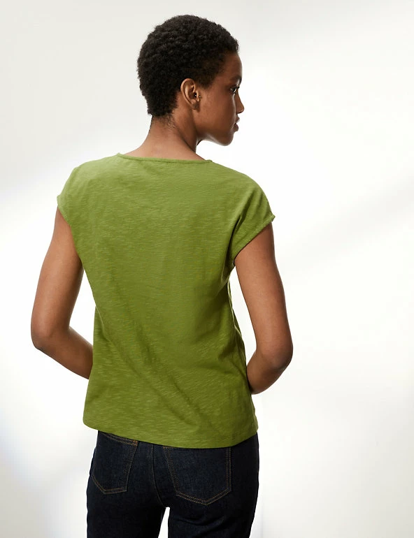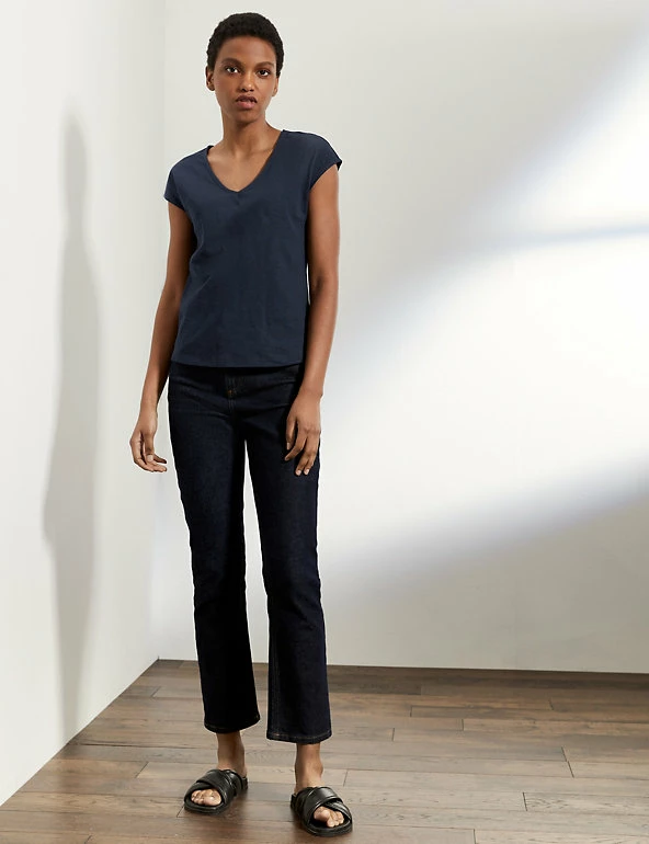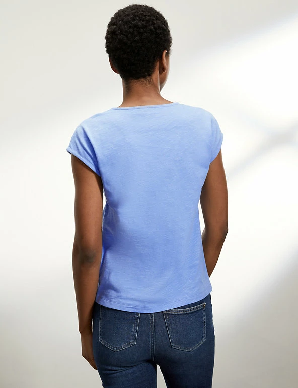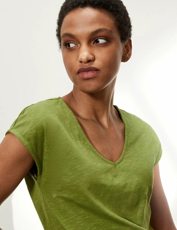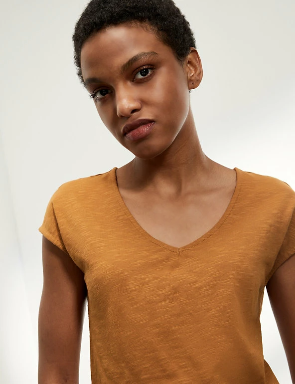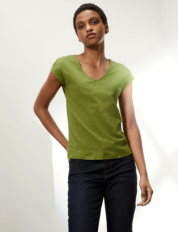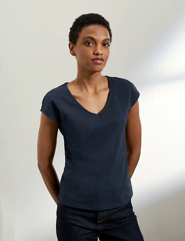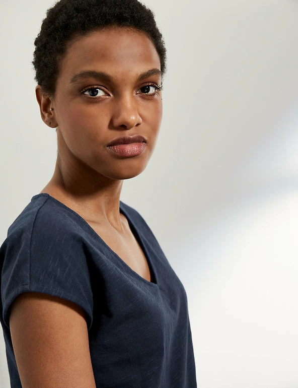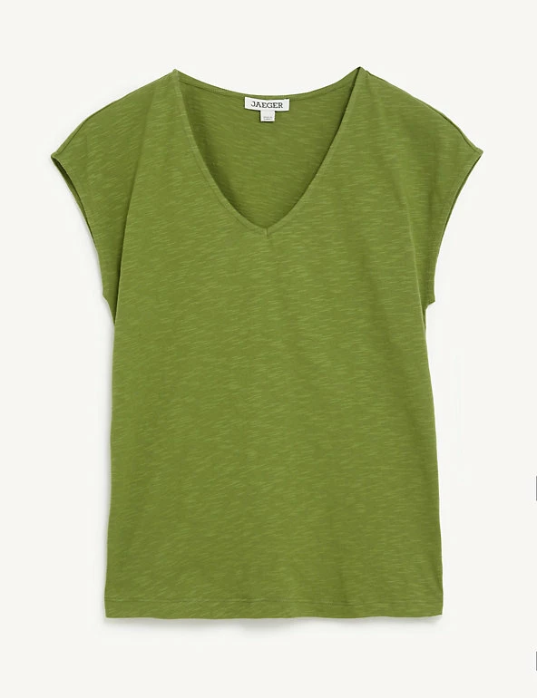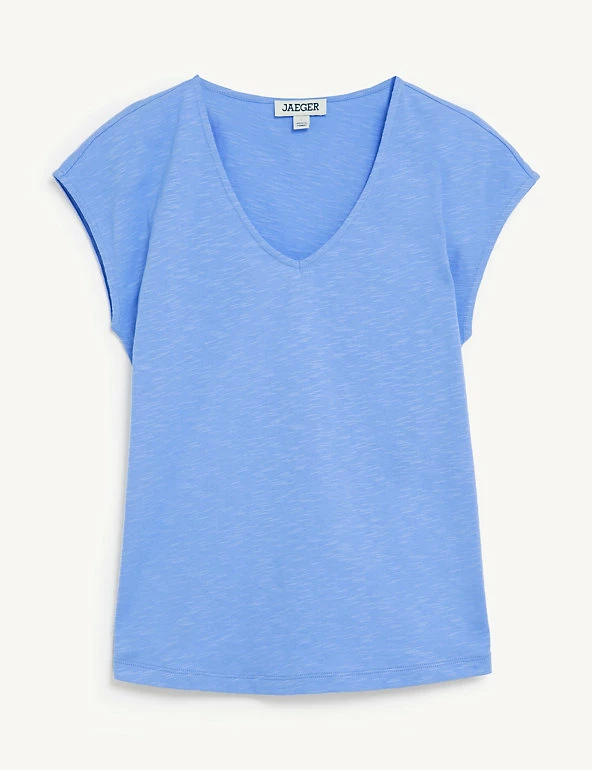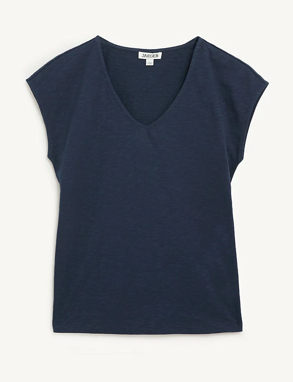 This pure organic cotton top from Jaeger is a wardrobe staple. It’s crafted from textured slub fabric in an effortless regular fit, with short sleeves and a flattering v-neck. A timeless style that pairs well with jeans and skirts.