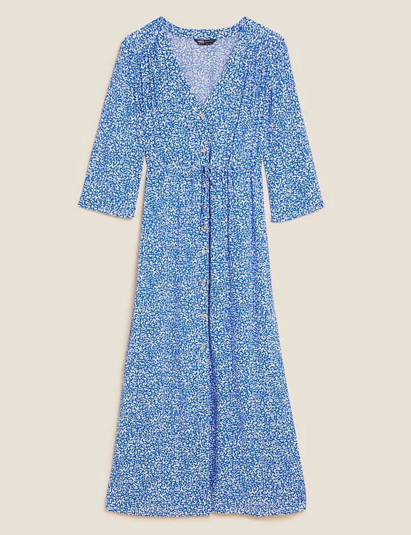 This beach dress combines bold print and an effortless shape for everyday appeal. It’s cut to a regular fit, with short sleeves and a smart v-neck. A matching tie adds a flattering touch, while gold-tone button fastenings complete the look.