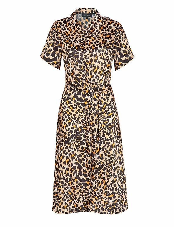 This striking shirt dress from Sosandar features a bold animal print to add a touch of fierceness to your ensemble. It’s cut in a regular fit, with short sleeves and a knee-length hemline that are ideal for warmer weather. A tie fastening emphasises your waist, while the button-up front gives plenty of versatility. A smart collared neckline adds a crisp finishing detail.